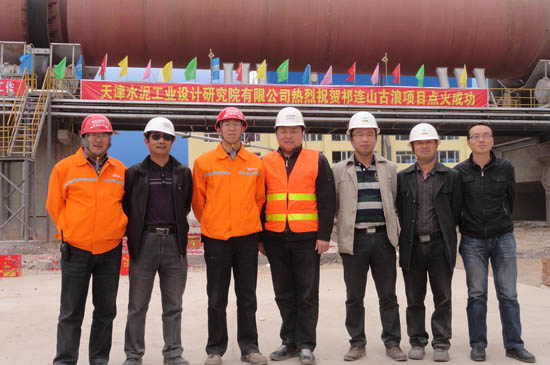 中材国际天津公司项目总监兼工程管理中心副主任李振兴、古浪项目经理赵森、副经理邢艳青,业主项目经理蒋朝辉、副经理吴永成参加点火仪式并共同点燃回转窑,点火一次成功。