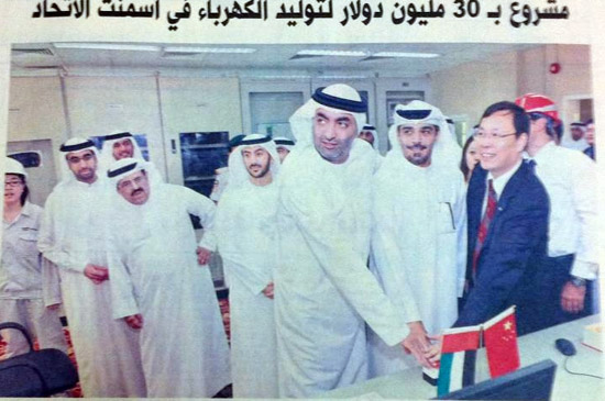 阿联酋拉斯海马酋长国王储阿哈穆德与中材节能总裁胡也明一起为项目揭幕