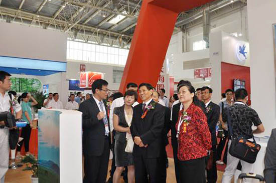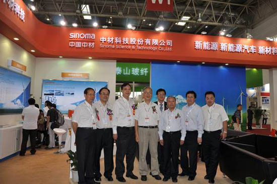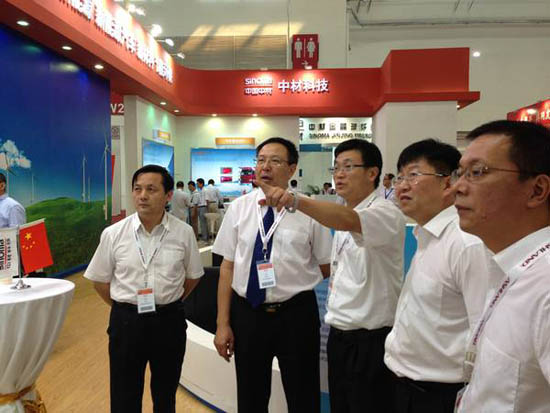 中国建筑材料联合会会长乔龙德(左三)到中材科技展台参观