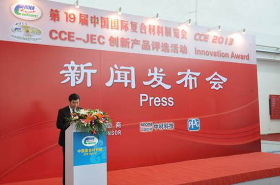 本届展会继续设立玻璃钢/复合材料“创新产品展区”,集中展示高科技含量优秀新产品、最新应用范例。作为2013年本次中国国际复合材料展——JEC创新奖的赞助商代表,刘颖出席颁奖仪式并致辞,中材科技创新产品:高海拔低风速叶片-Sinoma 45.2-1.5MW、220KV复合材料门型杆塔、纤维增强塑料整体车厢获得第十九届“中国复材展-JEC”优秀创新产品奖。