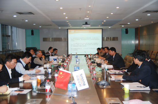 在中材建设,罗汉一行听取了中材建设董事长童来苟关于中材建设整体工作情况的汇报,详细了解了中材建设“走出去”工作开展情况,与中材建设领导班子成员及区域经理进行了深入的座谈,并实地查看了中材建设项目管理信息系统。