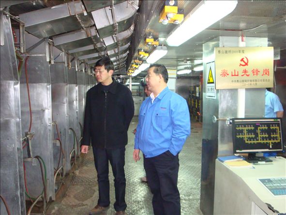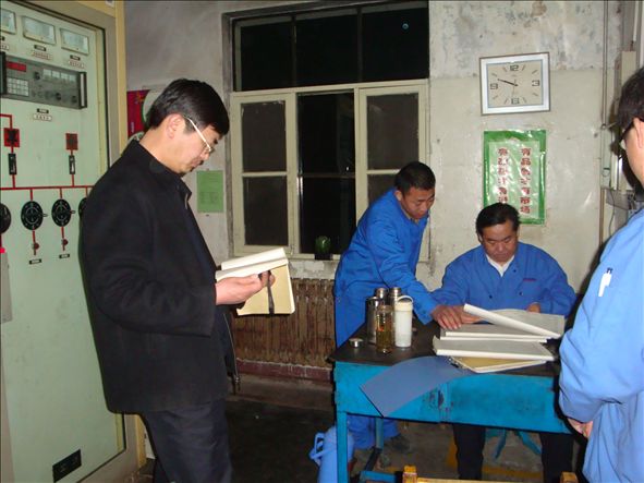 为响应国务院下发的《关于进一步加强企业安全生产工作的通知》的号召,落实中材集团安全生产会议精神,泰山玻纤决定从2011年3月15日开始,执行领导干部带班制度,由公司副总工程师以上领导干部轮流带班,负责抽查安全生产制度的执行、落实情况,交流工作经验,查找不足与差距。值班期间,值班领导深入生产现场,认真检查作业记录、生产情况、设备运行情况,与岗位员工交流工作经验,对于所发现的问题和不足,及时提出整改意见。