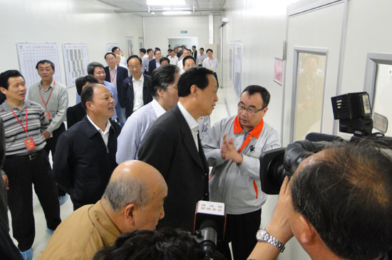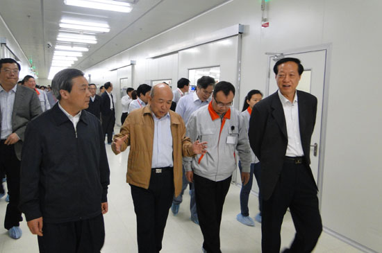 本网讯 4月24日,省政协副主席张久汉率驻苏全国政协委员、省政协领导班子及全省省辖市政协主席共120余人对扬州中科半导体照明有限公司进行了调研。