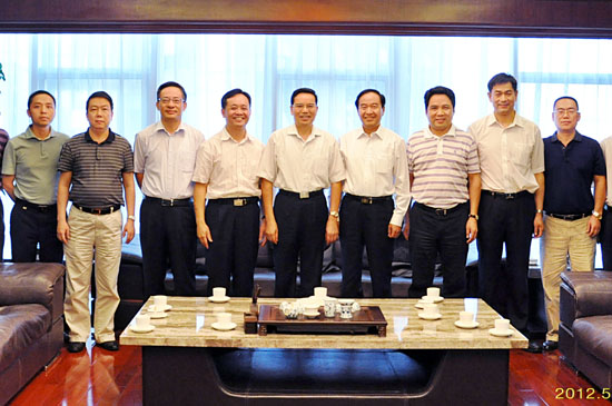 广东省原省委常委梁伟发(中)、云浮市委书记黄强(左四)、集团党委书记于世良(左六)、
