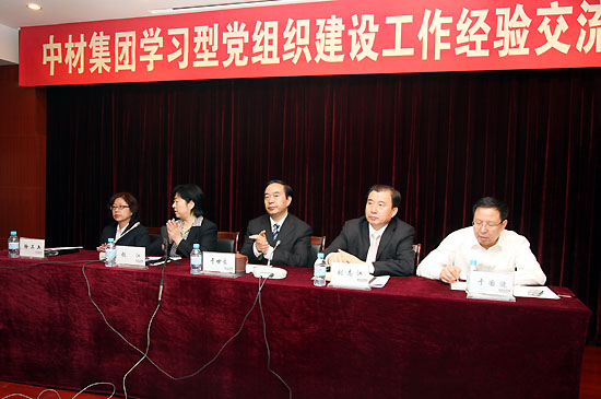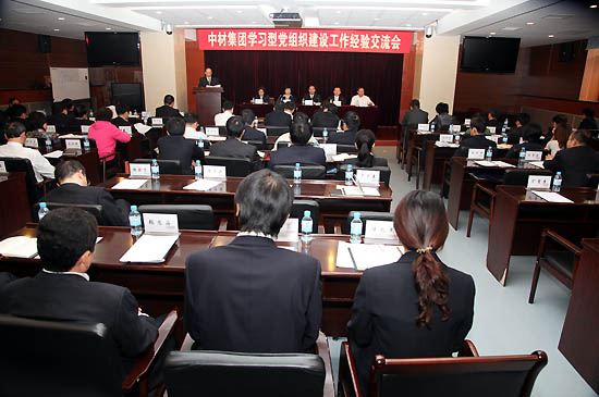 中材水泥总经理满高鹏、中材国际天津公司党委书记夏春光、中材高新党委副书记王耀明、吉林总队总队长兼党委书记林景胤在会上交流了各自企业推进学习型党组织建设工作的做法和经验。会议还印发了中材国际南京公司、中材科技、天山股份、宁夏建材、祁连山水泥、泰山玻纤、甘肃总队等7家单位的书面交流材料。
