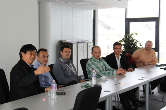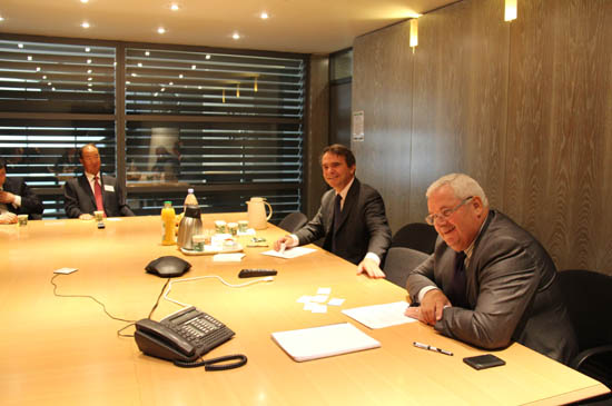 在前往匈牙利途中,外部董事一行访问了拉法基集团总部,并与拉法基集团执行副总裁Guillaume ROUX、工程中心副总裁Jacques GLEMAREC进行了会谈。张江在会谈中说,拉法基集团是中材集团的重要合作伙伴,双方有着良好的合作历史,中材集团非常重视彼此间的合作关系,希望双方进一步深化合作,促进互惠共赢。Guillaume ROUX说,中材集团在水泥技术装备工程领域,有着领先的技术、丰富的经验,中材集团承建的拉法基集团的水泥项目运行良好,为拉法基集团创造了可观的效益,并希望与中材集团进一步拓展合作领域。