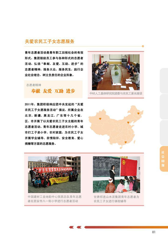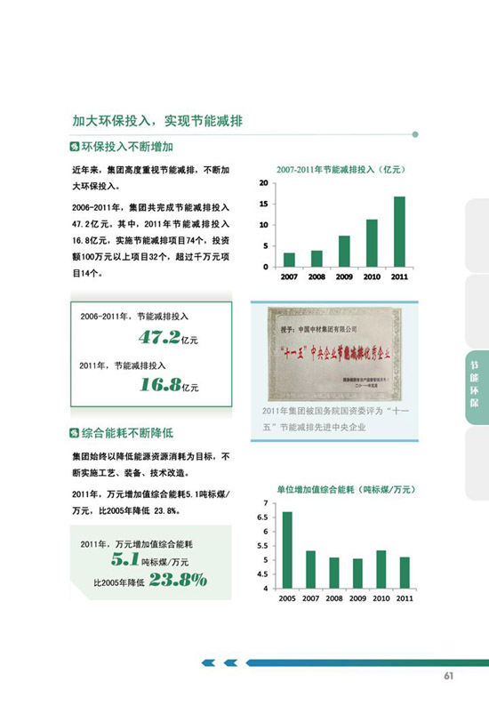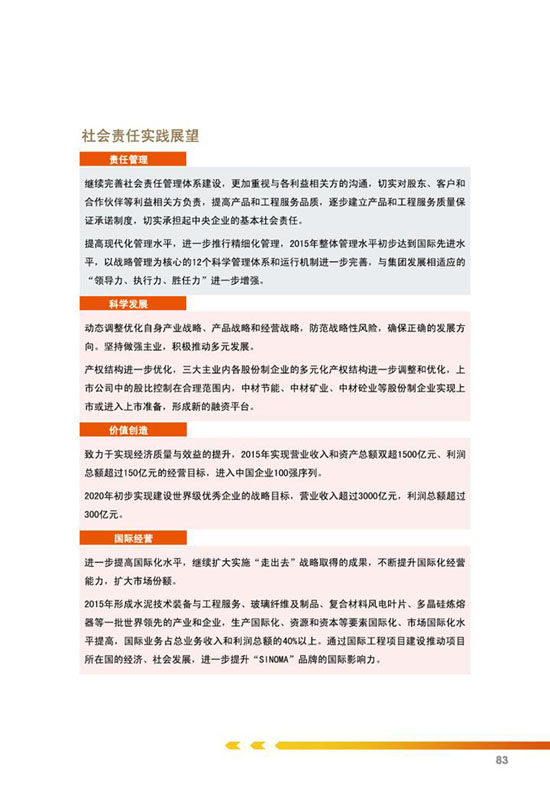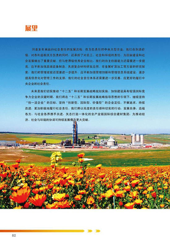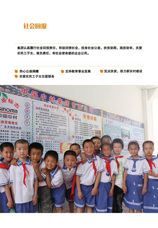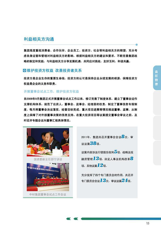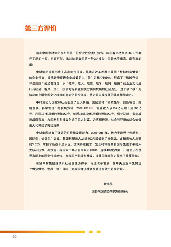 本网讯 集团于2012年11月5日发布了《中国中材集团有限公司2011年社会责任报告》,长期以来集团十分重视社会责任工作,在履行社会责任方面做了大量扎实有效的工作,得到了各级政府和有关方面的肯定和认可。