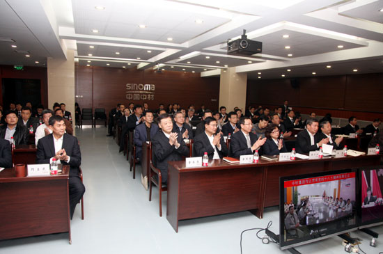 会议以视频方式召开,集团领导、中材股份高管、在京单位党政主要领导、总部各部门负责人近100人在主会场参加会议;84个单位设分会场,各单位领导班子成员、党组织书记、有关部门负责人在分会场参加了会议。