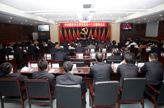 本网讯 11月19日,“中材集团传达贯彻党的十八大精神会议”在集团总部召开,集团党委书记于世良出席会议并作重要讲话,党委常委、总经理刘志江主持会议,党的十八大代表、中材国际环境工程有限公司副总经理胡芝娟出席会议并传达党的十八大精神。