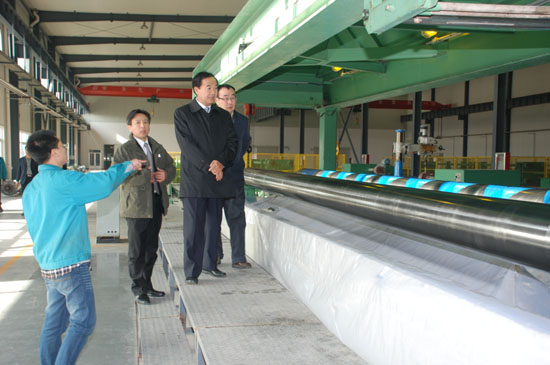 会后,于世良一行参观了中材金晶高压玻璃钢生产线、湿法薄毡生产线及合资企业池窑拉丝生产线。