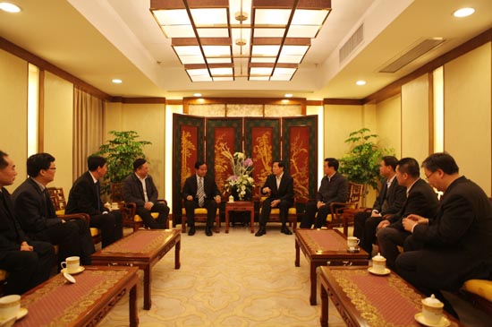 福建省经贸委、国资委主任周联清,甘肃省工信委主任李平,福建省经贸委副主任郭恒明,集团党委常委、中材股份总裁李新华,集团办公室主任傅金光,中材科技南玻院院长赵谦,厦门艾思欧标准砂有限公司总经理、党委书记李苇,中国高岭土公司董事长、总经理李勇,中国建材工业地质勘查中心福建总队队长刘荣生等参加了会晤。