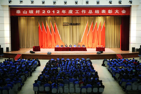 泰山玻纤董事长、总经理唐志尧代表公司领导班子做了题为《坚定信心,攻坚克难,深入挖潜,为全面完成全年生产经营目标而努力奋斗》的2012年度工作总结报告。《报告》指出,2012年是全球金融危机以来国内外宏观经济形势最为严峻和复杂的一年,也是泰山玻纤到期、超期和老旧生产线最为集中的一年。在集团的正确领导下,泰山玻纤基本完成了年度各项生产经营指标,实现了销量首次超过38万吨、产销率超过100%的佳绩,泰山玻纤在行业中的竞争力进一步提升。《报告》深入分析了2013年公司面临的国内外形势,指出了公司发展存在的问题与不足。《报告》提出了2013年的生产经营指标,对2013年工作进行了全面部署。《报告》号召全体员工在中材集团、泰安市委、市政府的领导下,以科学发展观为统领,坚定信心,攻坚克难,深入挖潜,为全面完成全年生产经营目标而努力奋斗。