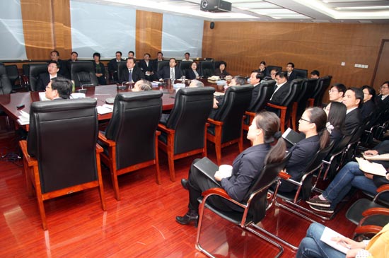 集团领导、中材股份高管、总部各有关部门人员参加了会议。