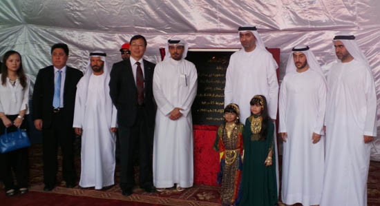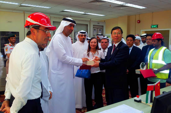 阿联酋拉斯海马酋长国王储阿哈穆德与中材节能总裁胡也明一起为项目揭幕