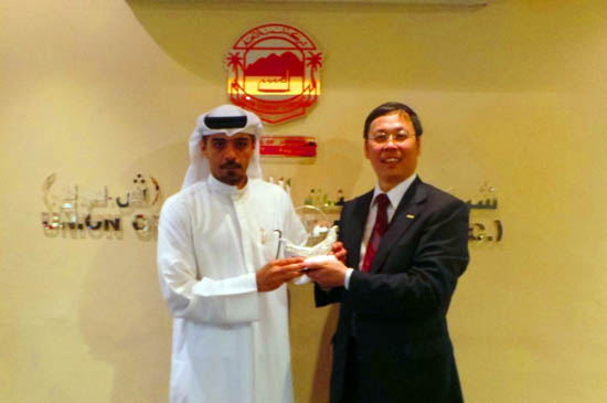 竣工仪式后,王储与胡也明进行了会谈,王储充分肯定了项目的成功和中材节能团队所做出的努力,并表示希望能与中材集团在其他领域有进一步的合作。胡也明感谢UCC公司对中材节能的充分信任,他说,中材节能有完整的节能减排产业链和先进的余热利用技术,希望为阿联酋及UCC提供更多、更好的服务,并期待王储到中材节能参观考察。