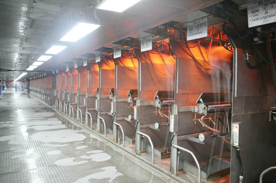 满莊新区8万吨生产线为何能震撼众多的国际国内客户?唐志尧说,是很多新技术的集成,新项目的专业技术创新有很多,工艺技术、窑炉技术、漏板技术,工艺布置,包括节能、余热利用技术,这些在国内都处于非常先进的水平。