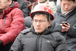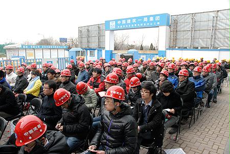 国资委机关青年志愿者与乔老在工地前合影