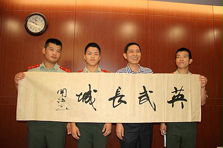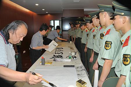 书法家为武警官兵挥毫题字