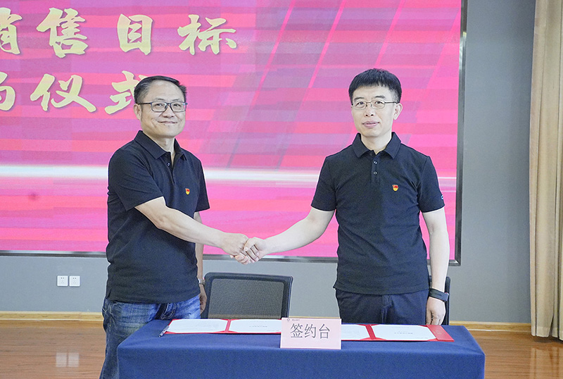 刘利锋分别与销售部、国际业务部签订2025年度销售目标责任书,勉励销售团队坚定市场信心,强化突围决心,以承压奋进的拼搏姿态全力完成年度目标。