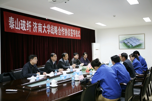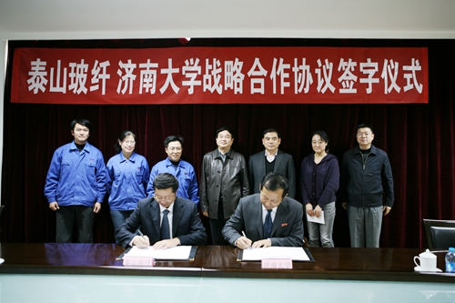 11月25日,泰山玻纤与济南大学战略合作协议签字仪式在公司603会议室举行。双方表示将本着优势互补、互惠互利、共同发展的原则,在科技开发、高新技术产业化、科技信息交流、人才交流等多个方面,实现互惠双赢。